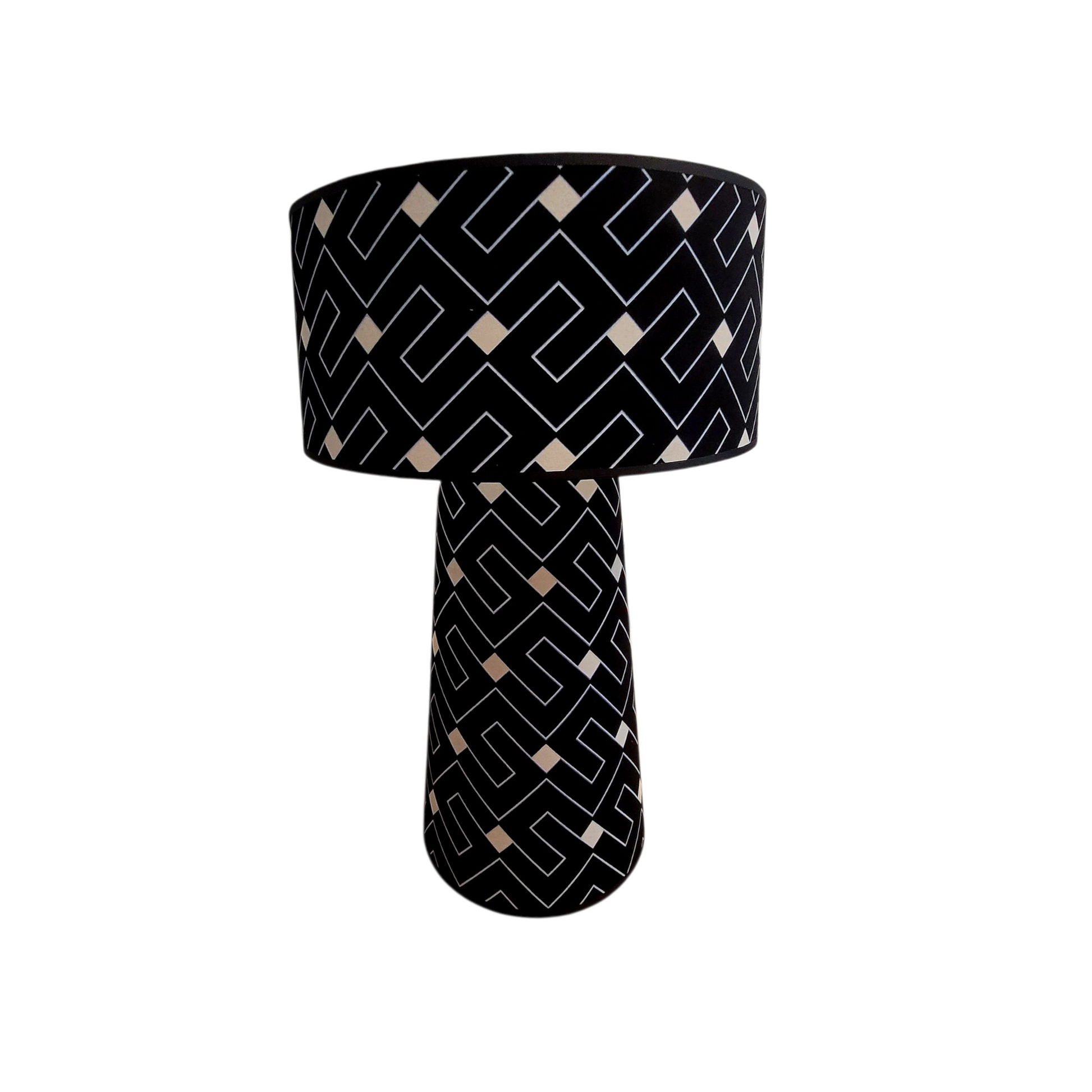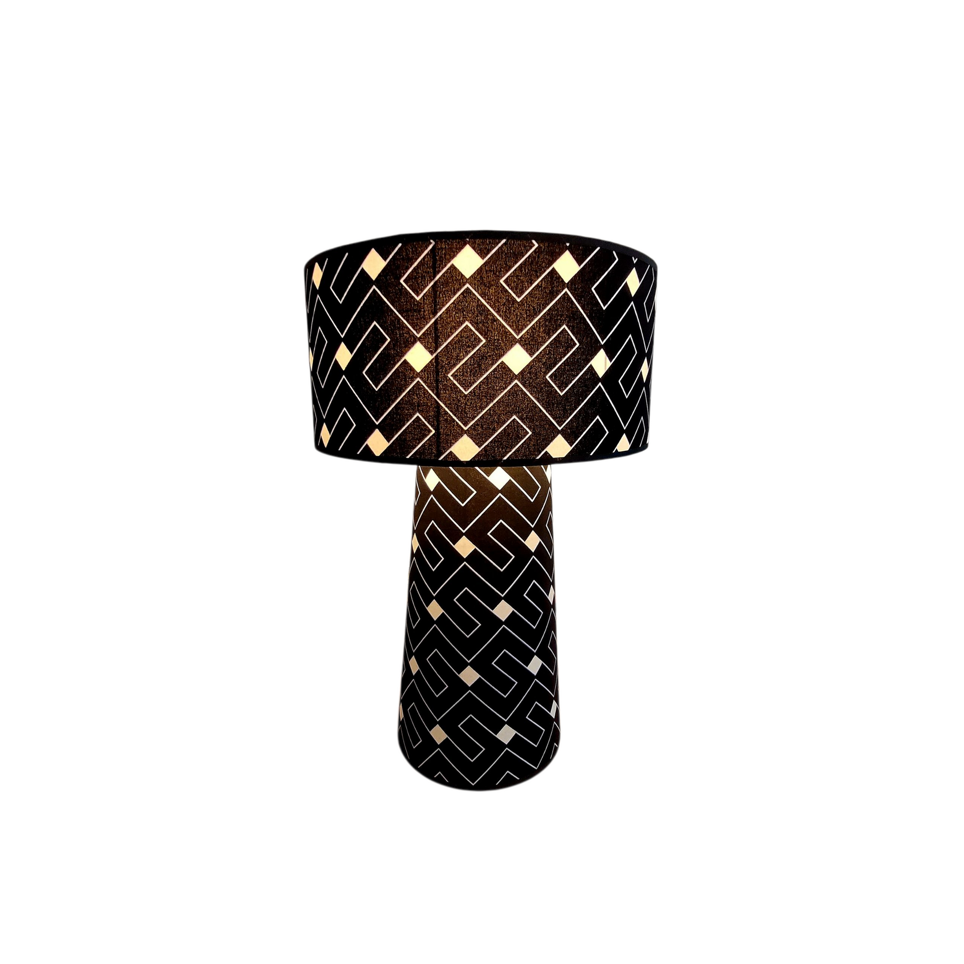 Crafted from artisan-made African fabric, this lampshade showcases striking black and white geometric patterns. Each motif reflects the rich heritage and skilled craftsmanship of African textile traditions, bringing authentic, refined artistry and a unique visual rhythm to your space.